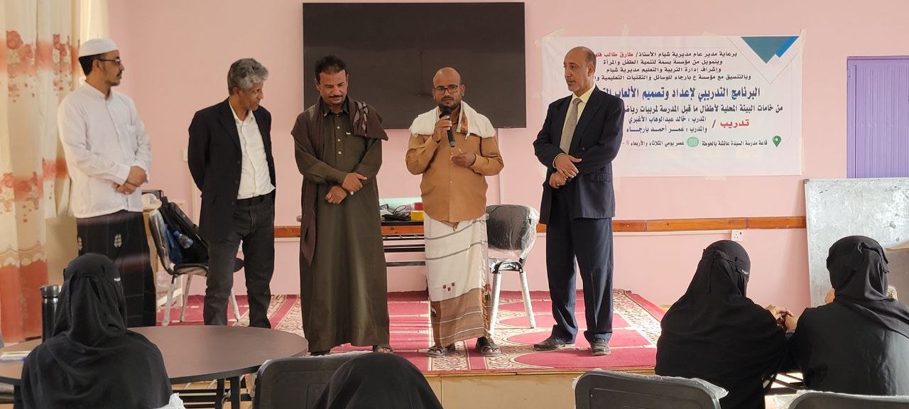 برعاية مؤسسة بسمة لتنمية الطفل والمرأة، دشّنت إدارة التربية والتعليم بمديرية شبام، دورة تدريبية متخصصة في "إعداد وتصميم الألعاب التعليمية لمعلمات رياض الأطفال"، وذلك بالتنسيق مع مؤسسة بارجاء للوسائل التعليمية، وبإشراف كل من المدربين الأستاذ خالد عبدالوهاب الأغبري والأستاذ عمر بارجاء.