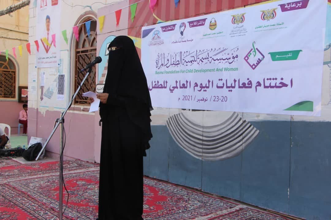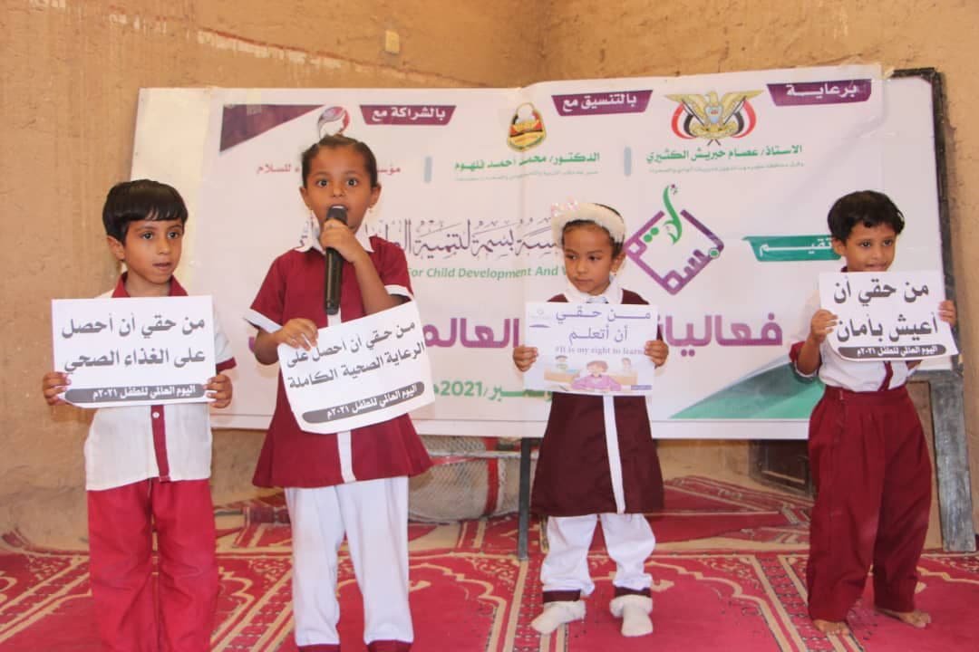 اختتمت صباح اليوم الموافق 23 /نوفمبر 2021م بسيئون فعاليات اليوم العالمي للطفل نظمتها مؤسسة بسمة لتنمية الطفل والمرأة بالتنسيق مع مدارس الارتقاء الأهلية .