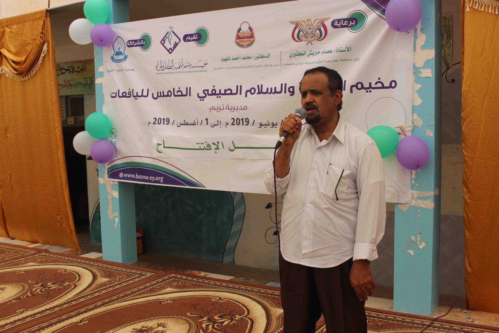 برعاية كريمة من وكيل محافظة حضرموت الاستاذ عصام بن حبريش الكثيري ومكتب وزارة التربية والتعليم بالوادي والصحراء وشارك في المخيم أكثر من 600 من الفتيات على مستوى مديريتي سيئون وتريم
