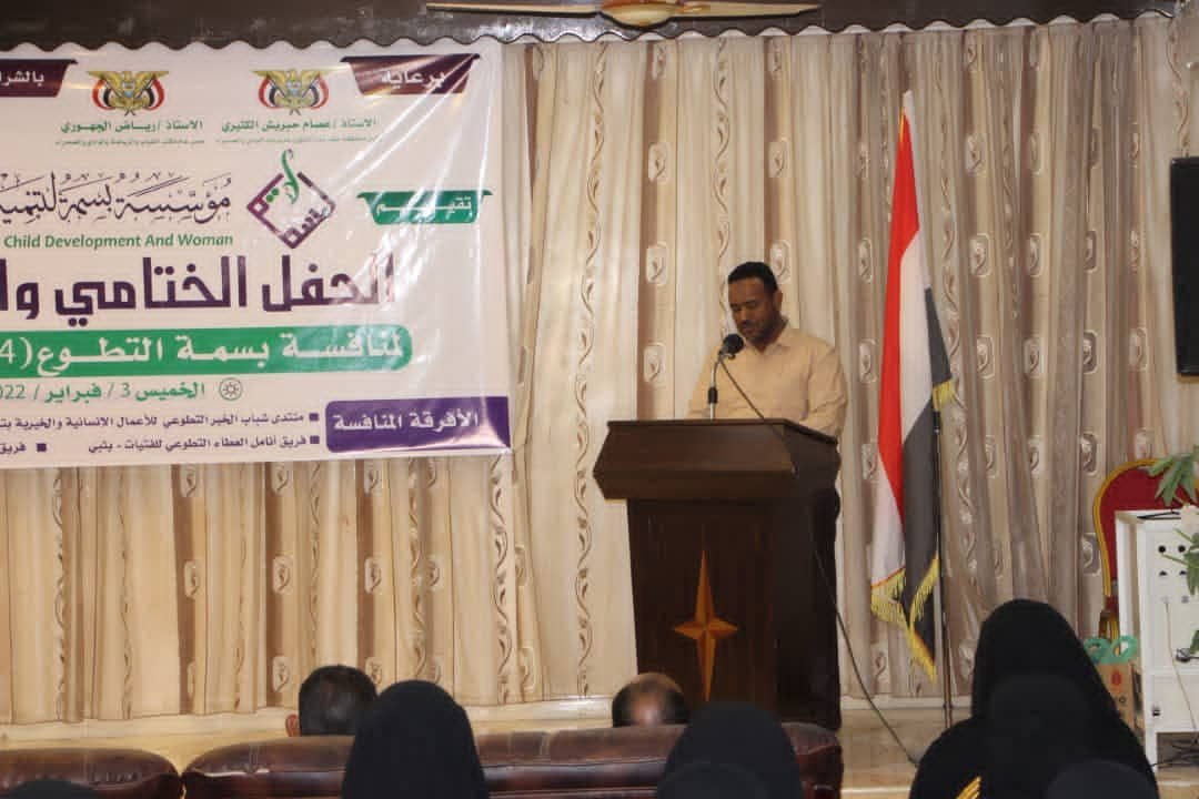 In the closing and honoring ceremony, the Assistant Undersecretary of Hadhramaut Governorate for the Affairs of the Valley and Desert Directorates, Abdul Hadi Al-Tamimi, praised the various initiatives of the volunteer teams as one of the great humanitarian works that reflect the extent of awareness and culture among young people and girls, noting that volunteer work is a civilized behavior in nations that contributes to improving the positivity of individuals and events. community development.