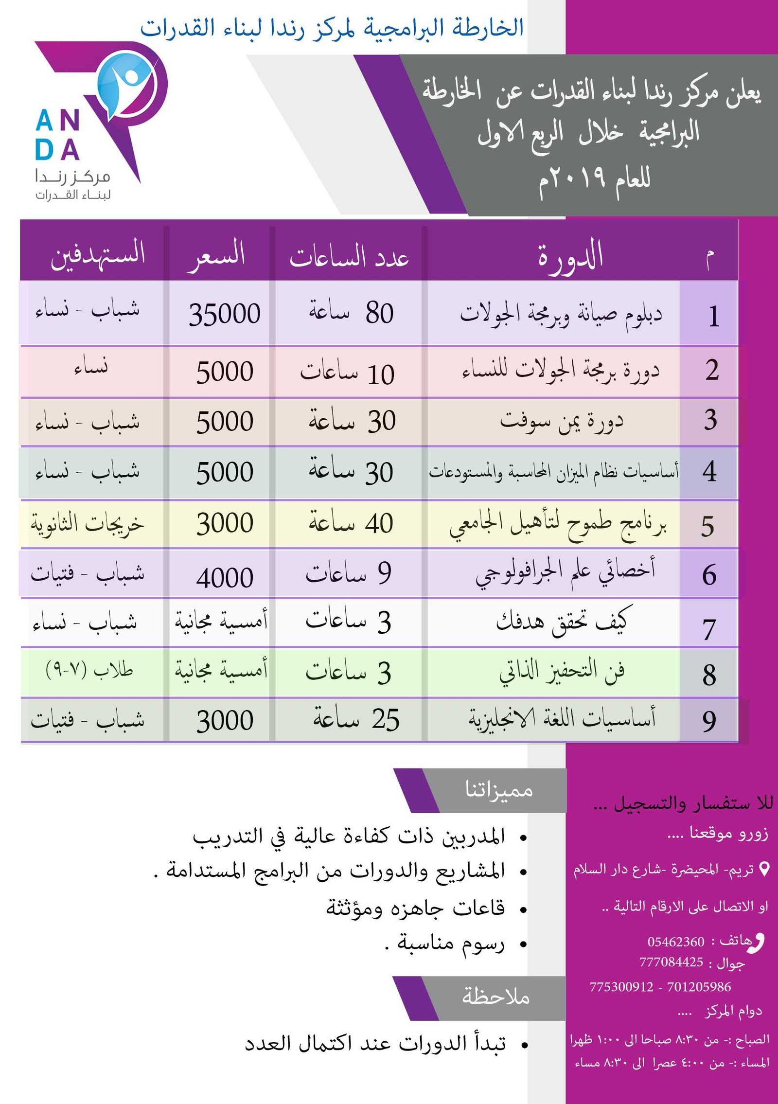 وتأتي هذه الدورات ضمن الخطة البرامحية لمركز رندا لبناء القدرات