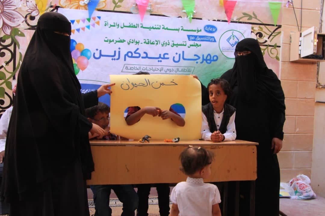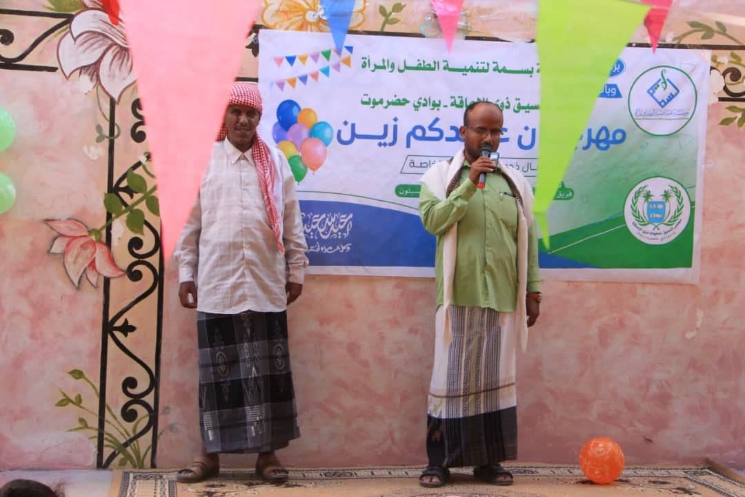 وفي معرض الحفل اشاد الاستاذ صالح عبيد بن زين بتدخلات مؤسسة بسمةمع ذوي الاحتياجات الخاصه شاكرا لهم هذه اللمسة العيدية والتي لها الاثر النفسي للاطفال