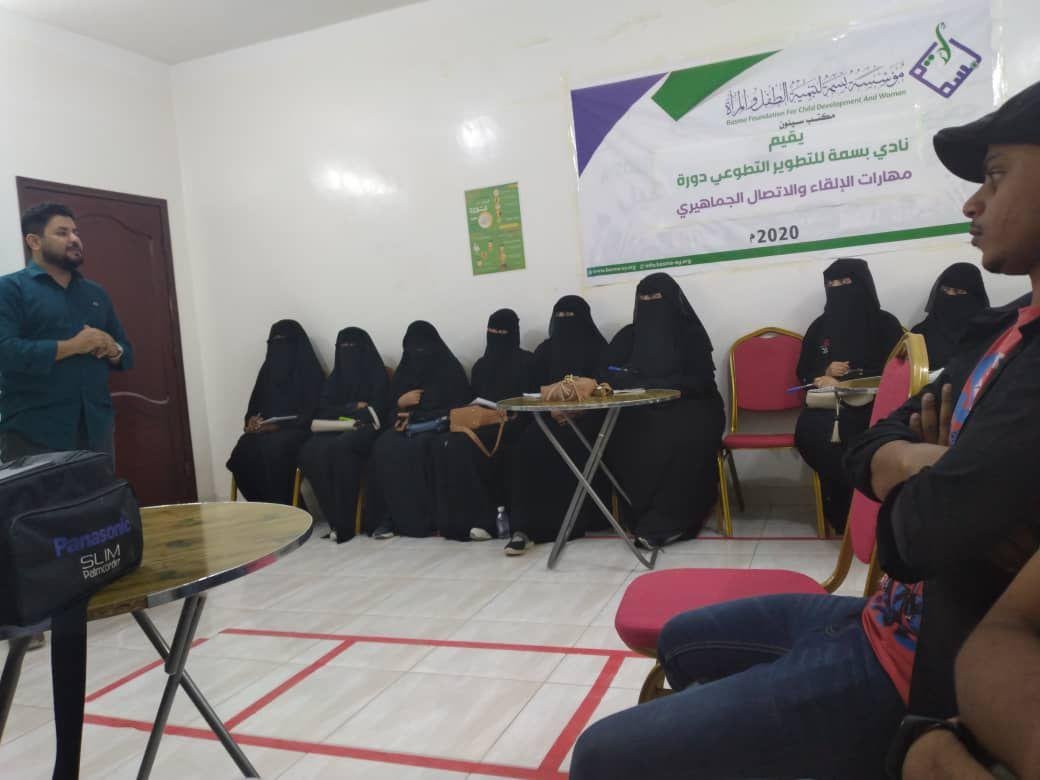 نظم نادي بسمه للتطوير التطوعي مساء يوم امس السبت 17/10 /2020 دورة في مهارات الإلقاء والاتصال الجماهيري للإعلامي ايمن باحميد معد ومقدم برامج تلفزيونية وإذاعية ومدرب معتمد في مهارات الإلقاء والإتصال الجماهيري.