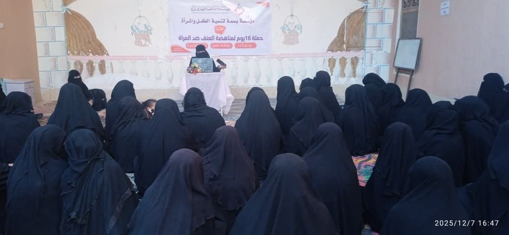 دشّنت مؤسسة بسمة لتنمية الطفل والمرأة فعاليات حملة 16 يوم لمناهضة العنف ضد المرأة، ضمن جهودها المستمرة في نشر الوعي وتعزيز حماية حقوق المرأة.