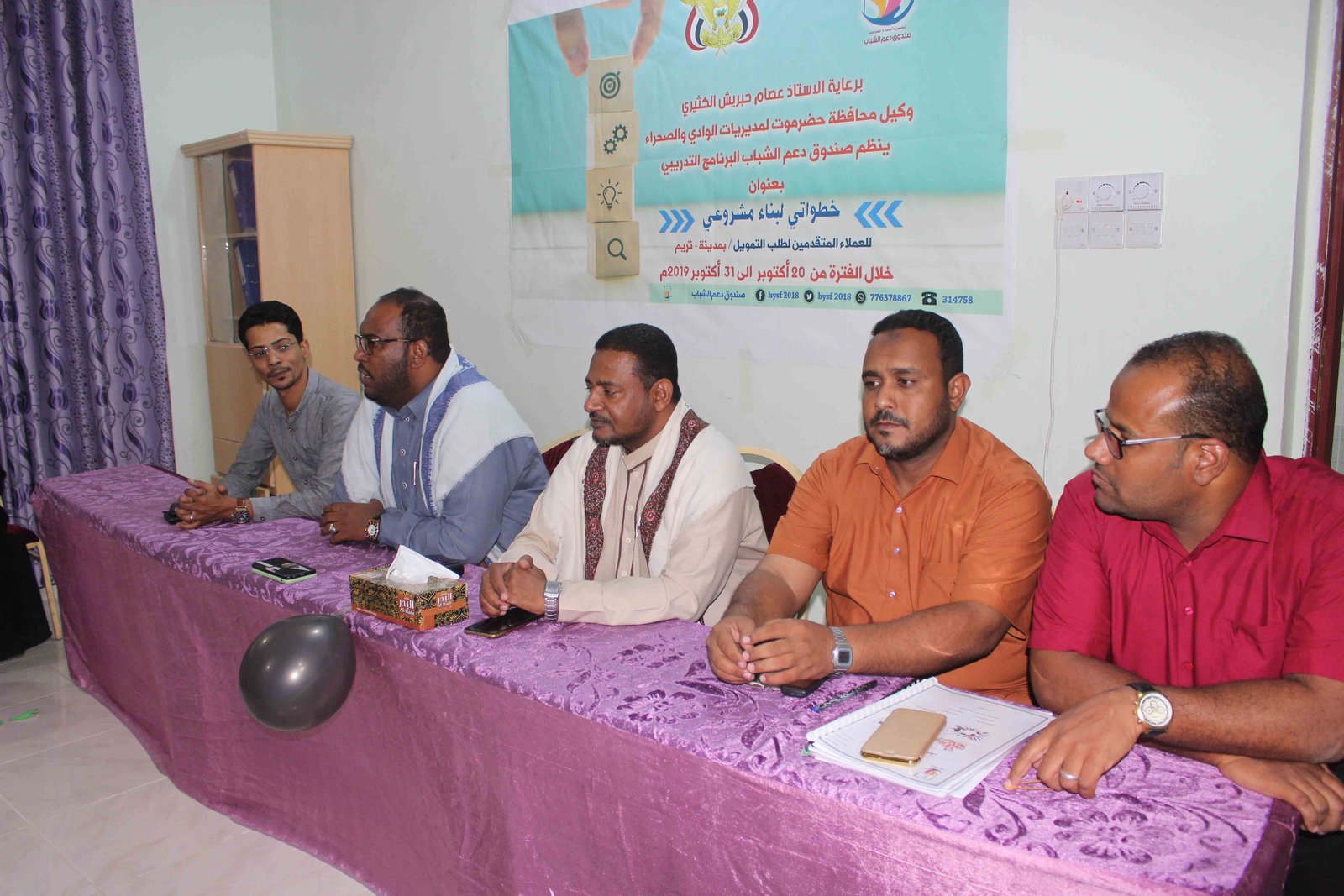 واستهدف البرنامج الذي استمر مدة 10 أيام 15 شاب وشابة من العملاء المتقدمين لطلب التمويل من مديرية تريم. تلقى المشاركون في البرنامج على حزمة تدريبية في المهارات الحياتية وريادة الأعمال ودراسة الجدوى الاقتصادية وخطط المشاريع ومزايا التسويق ومسك الدفاتر المالية.